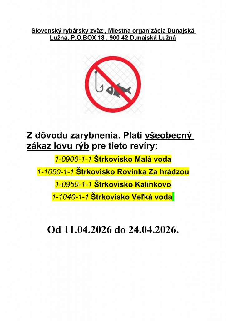 revíry budú uzavreté od 11. 4. do 24. 4.