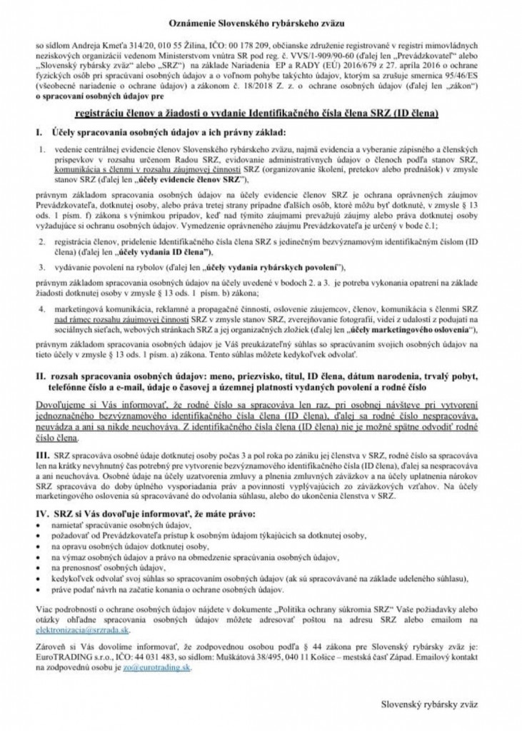 OCHRANA OSOBNÝCH ÚDAJOV a PRIHLÁŠKA